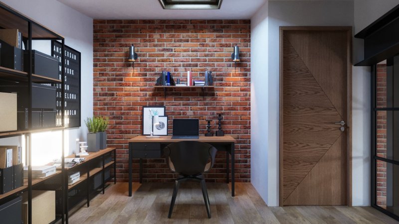 Комнаты, полностью оклеенные обоями под кирпич, у многих ассоциируются с гаражом. Чтобы исключить давящую обстановку и избавиться от ощущения несуразности интерьера, используют полотна для выделения определенных участков. Оставшиеся стены оформляют любым другим отделочным материалом.