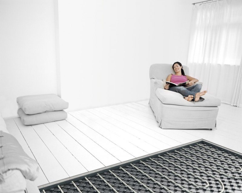 Во-первых, теплый пол предоставляет контроль над температурным режимом, и это удобно для больших площадей. Энергоэффективность же выражается в экономии средств. Следующий положительный момент заключается в том, что почти вся система будет скрыта — это дополнительные возможности для эстетики. Теплые полы также показали высокую надежность в эксплуатации. Не последнюю роль играет также универсальность: подойдет любой теплоноситель, источник энергии и разные виды напольного покрытия. Среди минусов на первом плане стоит высокая инерционность. Резко изменить температуру не удастся, поэтому в моменты, когда солнечный свет перестает попадать в помещение, регулирование быстрого результата не даст. Это касается водяных конструкций. Теплый пол средних параметров не обогревает все помещение в холодное время года — второй среди главных минусов. Это касается и водяного, и электрического варианта.