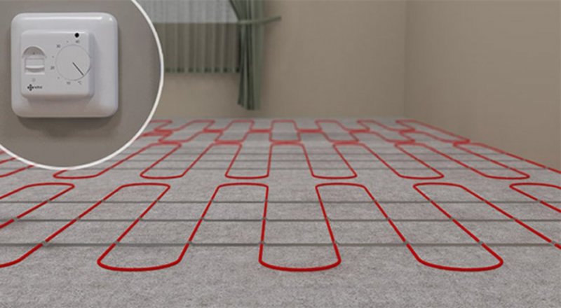 Этот вид теплого пола представляет из себя простой кабель. При укладке можно формировать любую конфигурацию. Кабельный пол подходит для помещений неправильной формы. Причем из всех вариантов электрического пола он — самый дешевый. Кабельная модель не требует установки толстого слоя стяжки. Подключение, к примеру, водяного пола мокрого типа связано с минимальным количеством знаний, а при эксплуатации не понадобится специальное обслуживание. В то же время работающее на высоких показателях мощности отопление потребляет много энергии от сети, так что после установки вариант перестанет быть экономным. Демонтаж кабельного пола — затратный процесс, а выходить из строя система будет при каждом повреждении в каком-то отдельном месте. Установка конструкции требует длительного формирования всего контура в двух направлениях.
