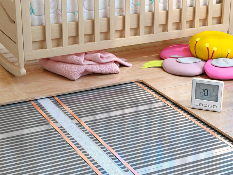 Сплошные полы при потребности перестилают, используют заново столько раз, сколько понадобится. Для нормальной работы хватит 70 % поверхности пола. Дополнительные источники тогда не потребуются. Причем теплый пол можно будет урезать. Для стержневых вариантов формируют первичный пол, на который укладывают изолон. После монтажа системы отопления наносят слой клея под чистовое покрытие и облицовывают пол. Как и для других видов электрических полов, стержневой обустраивают терморегулятором. Перед установкой датчик обязательно включают для нагрева, и через несколько минут проверяют температуру нагревательного элемента. Руке должно быть комфортно. Иными словами, нагрев до 40 °C — нормальный показатель, значительно выше/ниже — плохой. Монтаж пленочных вариантов производят после применения изоляторов для свободных концов шин.