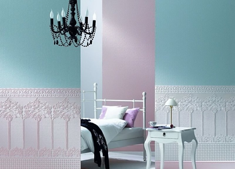 Этот метод иногда сопровождается сложностями. Нанесение краски на декоративную поверхность окажется более сложным, чем, к примеру, на гладкую флизелиновую основу. Во втором случае рисунок будет аккуратнее, а времени уйдет в разы меньше. Обои клеят после полного высыхания. Красящее вещество подбирают в насыщенных глубоких тонах, так как итоговый вид стен будет светлее, чем на окрашенных полотнах. Виниловые обои в любом случае можно покрыть дополнительным слоем. Отрезки окрашивают за один раз и не отвлекаясь — так обеспечивают ровный цвет. При этом раствор в емкости при постоянной работе не будет загустевать: валики и кисточки не прилипнут к полотну и не испортят ровный фон. Созданием полосатых или сложных рисунков до поклейки заниматься не стоит, если навык не развит в достаточной мере. Для обоев из бумаги метод может оказаться слишком неудобным, но для флизелиновых — это самый простой способ.