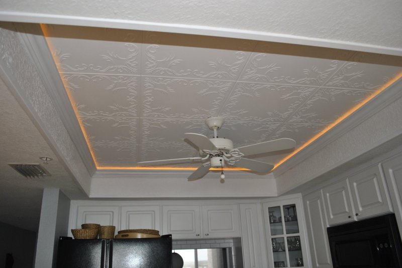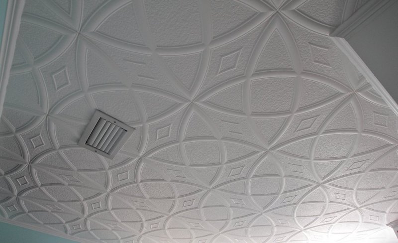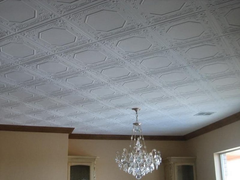 Потолок оформляют так, чтобы на него было приятно смотреть. В этом понимании обычный белый тон кажется удачным решением, но помимо классического варианта без цвета и фактуры, в интерьерах появляется декоративная облицовка. Одной из разновидностей современных отделочных материалов является пенополистирол. У многих он ассоциируется с упаковками, но в последнее время с помощью разных технологий и методик сырье превратилось в вариант для отделки. Пенополистиролом оформляют, а также утепляют комнаты. Его даже окрашивают некоторыми разновидностями красителей — получают нестандартный дизайнерский ход с цветным потолком. Поиск потолочной плитки из пенополистирола — процесс с минимальным количеством «неизвестных». Нужно определить подходящий тип изделия и остановить выбор на каком-то рисунке. Сборка системы не вызовет затруднений.