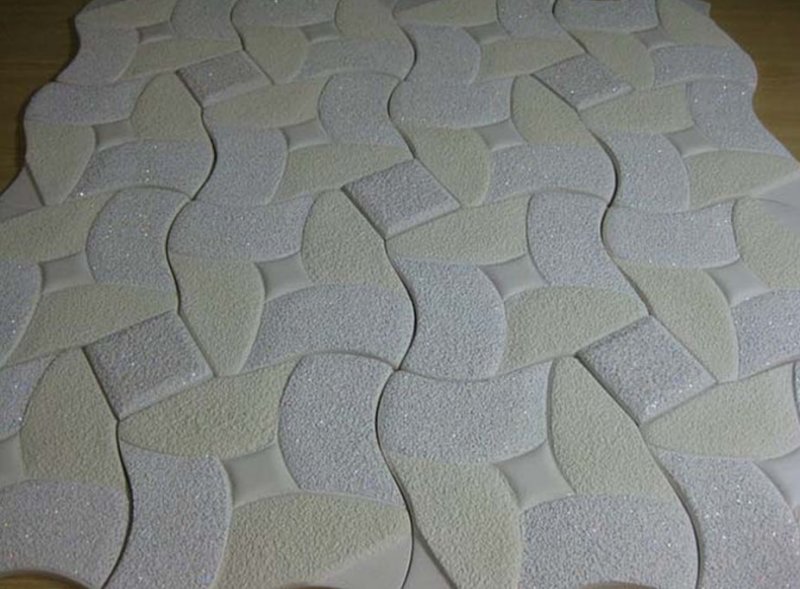 По типу поверхности выделяют 3 категории изделий: ламинированные, бесшовные, зеркальные. У ламинированной плитки есть особый пленочный слой. Благодаря такой обработке становится доступной широкая цветовая палитра, и оттенки длительное время сохраняют яркость. Ламинированную продукцию отличает стойкость к воздействию влаги. Бесшовные варианты обладают идеально ровными краями, поэтому их оклеивание и нанесение на поверхность не вызовет затруднений. Стыки при этом окажутся практически незаметными, ряды будут точными и закономерными, а само потолочное покрытие — без наименьших признаков кривизны. Зеркальные материалы получают отражающий слой, и, благодаря этой способности, применяются для визуального увеличения пространства и дизайнерских приемов. Зеркальным изделиям придают разнообразные формы.