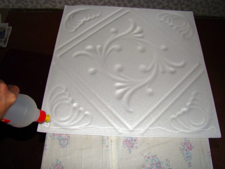 Пенополистирол удобен в плане обработки и монтажа. Все действия можно производить самостоятельно. Для отделки потолка пенопластовыми плитами не потребуется каркас, не нужно будет согласовывать его параметры с габаритами панелей. Достаточно надежного клея под характеристики пенополистирола, жидких гвоздей или полиуретанового клея-пены. Но из-за гладкой поверхности пенопласта приходится повышать адгезию. Экструдированные варианты изначально планируют максимально ровными, адгезивность у них еще ниже. Соответственно, технология крепления плитки требует качественного грунтования. Свое влияние оказывает и ответная поверхность. Стандартный бетон, к примеру, тоже не обладает достаточными показателями адгезии. На такое покрытие почти всегда наносят штукатурку, прежде чем монтировать плитку. Для других ответных поверхностей это не актуально, но если слой штукатурки был изначально, то его не убирают.