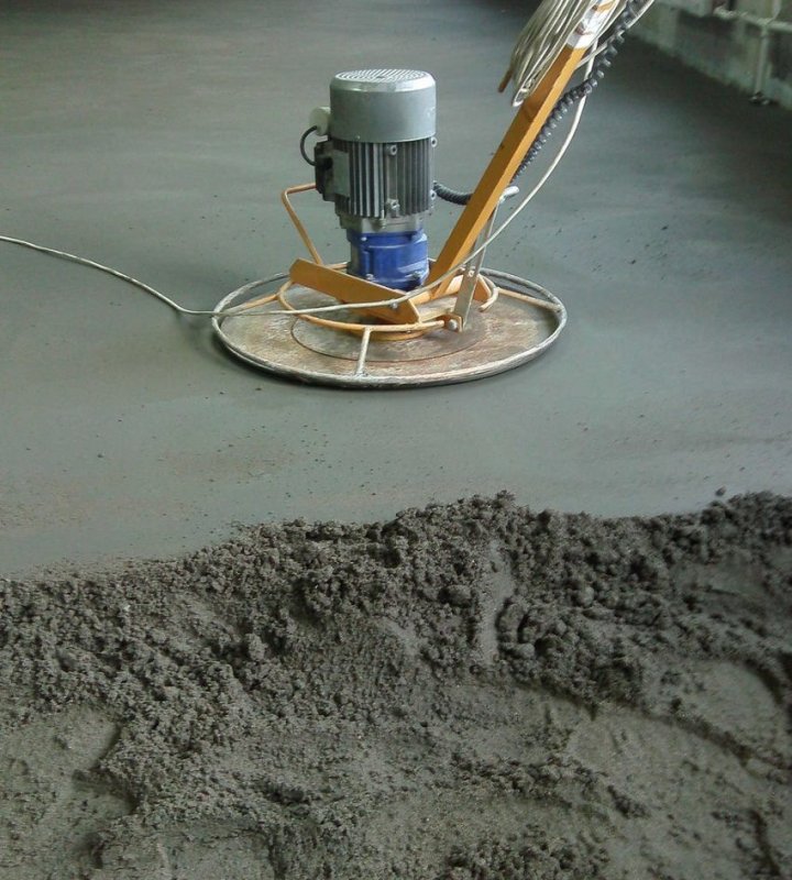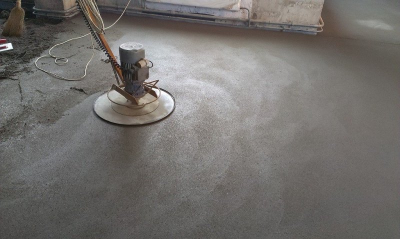 После выравнивания смеси дают отдохнуть 20 минут и приступают к затирке. Материал не дает усадку, поэтому этого времени на застывание будет достаточно. Процедуру надо провести до момента полного схватывания раствора. Для наиболее эффективной затирки используют специальную установку. Чтобы предотвратить разломы и трещины нарезают специальные усадочные швы, накрывают всю поверхность полусухой стяжки полиэтиленом и оставляют на 24 часа.