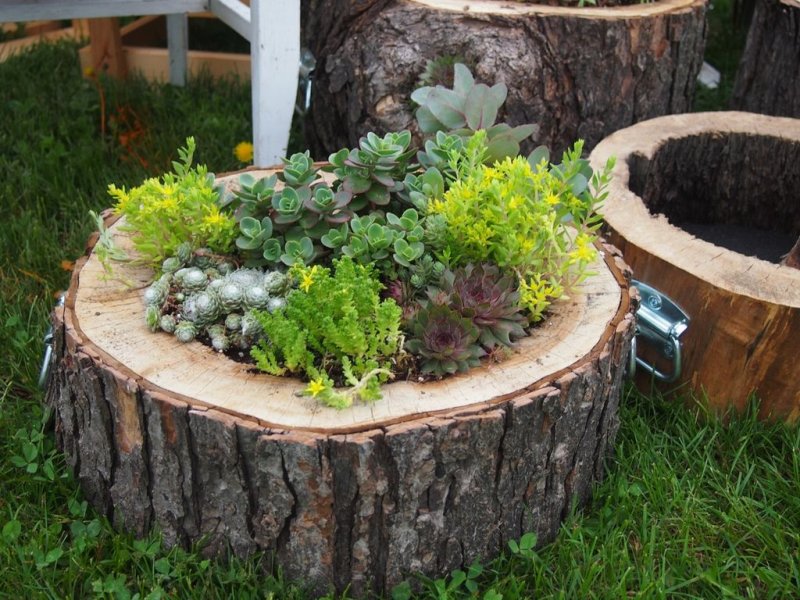 Просверлить в середине пня несколько отверстий и засыпать селитру. Спустя несколько недель образуется углубление. Его размеров будет вполне достаточно для высадки цветов.