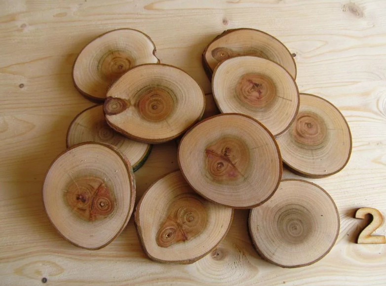 Уникальная структура древесины на срезе придаст индивидуальности любому изделию. Природный материал для творчества – это обрезанная поверхность дерева при торцевом отделении ствола. Это могут быть целые пни, ветки или слои различной толщины. Главная особенность натурального материала для творчества – наличие на срезе неповторимого рисунка, который образуют годичные кольца. Можно использовать свежесрубленную древесину или подвергнуть элементы высокотемпературной сушке. Тогда на них образуются характерные трещины.