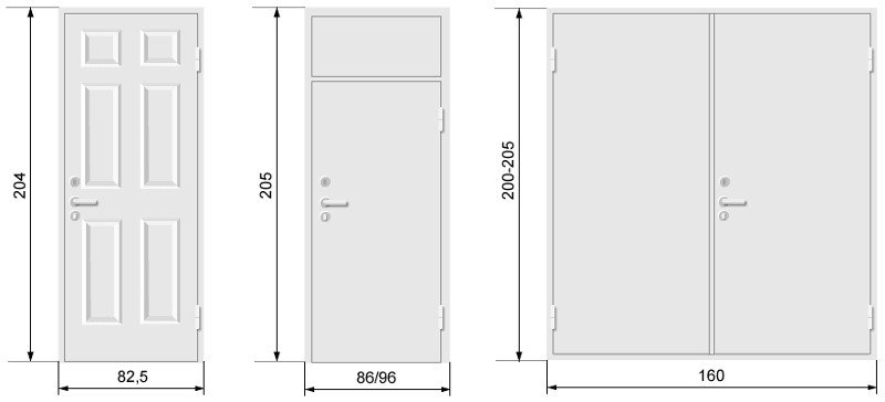 Габариты двери зависят от размеров проема, дверной коробки, количества створок и установленных государственных стандартов.