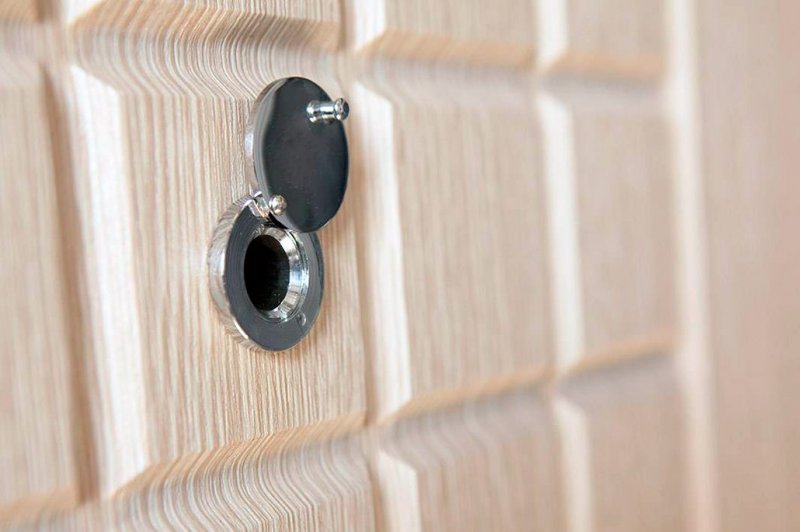Хорошая фурнитура очень важна для качественной защиты. И это не только петли, замок и разнообразные накладки. Современная дверь должна быть снабжена панорамным глазком с широким углом зрения. Устройство может быть перископическим. В таком изделии окуляр и объектив расположены на разных уровнях. Существуют пуленепробиваемые глазки, которые защитят от нападения вооруженного грабителя. Наиболее удобны электронные системы, которые подобно видеодомофону имеют дисплей и обладают способностью записывать звук и изображение.