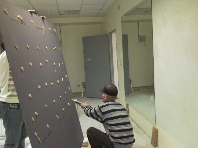 перед установкой подготовьте поверхности как основания, так и самого зеркала. Они должны быть сухие, очищенные от пыли и жирных пятен;