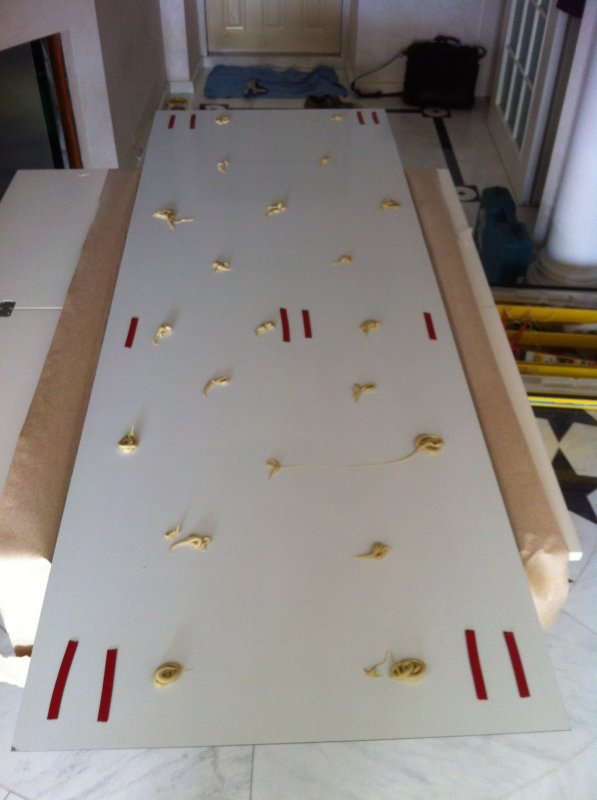 Далее следует прижать полотно к основанию и подождать несколько минут. Затем установите подпорки и оставьте конструкцию на пару дней. За это время клей полностью высохнет и удерживающие элементы можно будет удалить.