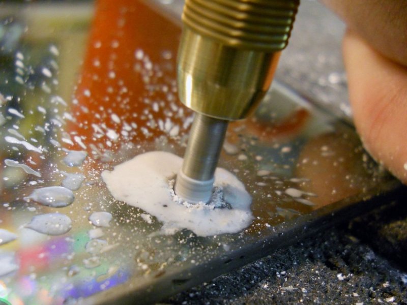 просверливают отверстия с помощью специального сверла с алмазным наконечником.