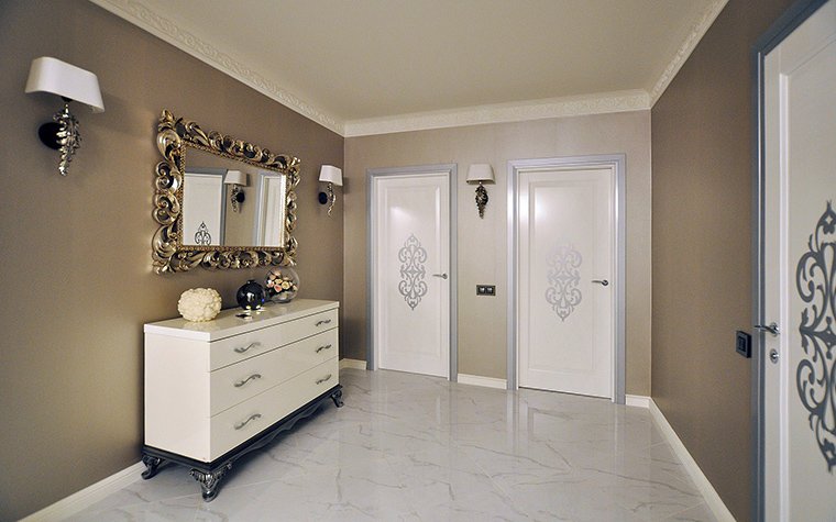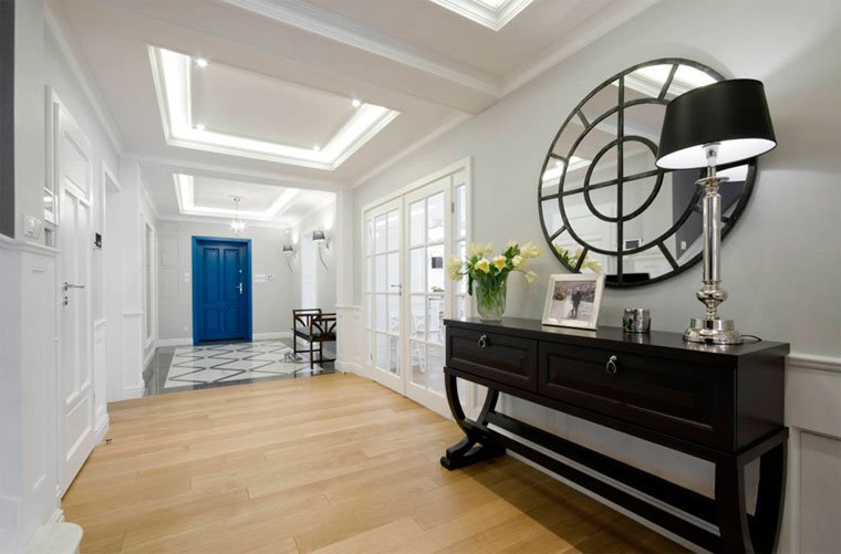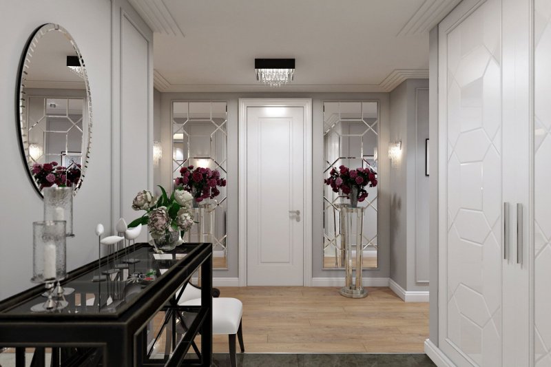 В прихожей лучше использовать высокое зеркало в пол. С его помощью вы всегда сможете адекватно оценить свой внешний вид перед выходом из дома. Высота панели должна быть комфортной для главного «рекордсмена» по росту среди членов вашей семьи.