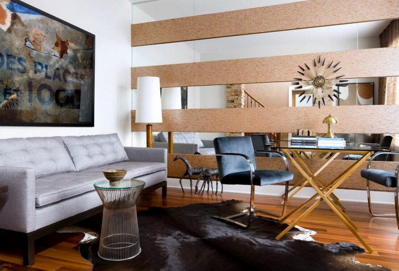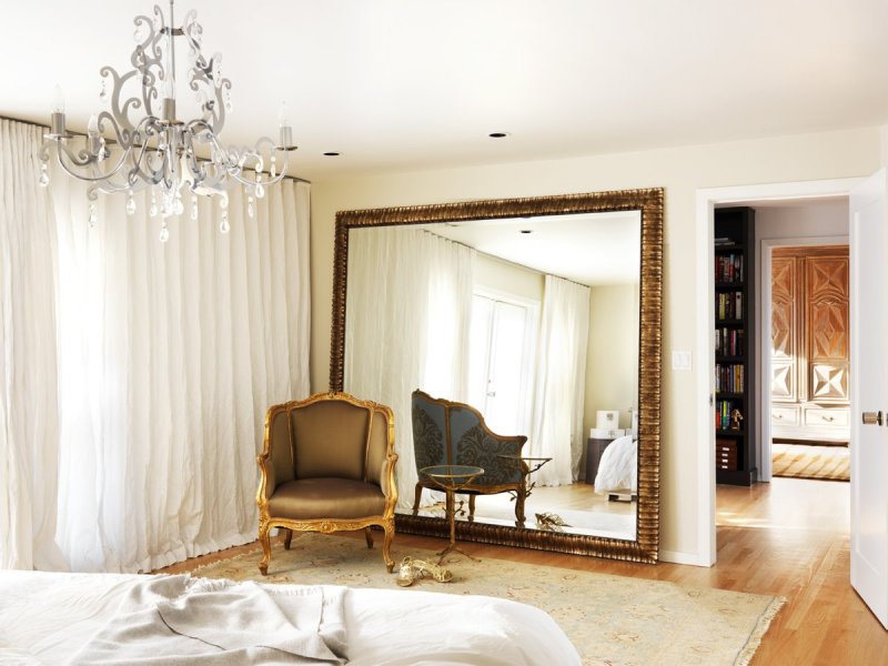 Если зеркало в раме не вписывается в ваш интерьер, отдайте предпочтение самостоятельному полотну. Зеркальная поверхность в этом случае становится частью отделки. Это могут быть как декоративные элементы самых разных форм – циферблат, фигурки бабочек, цветов, облаков, так и лаконичные полотна всевозможных размеров. Монтировать их следует скрытым способом, чтобы элементы крепления были не видны.