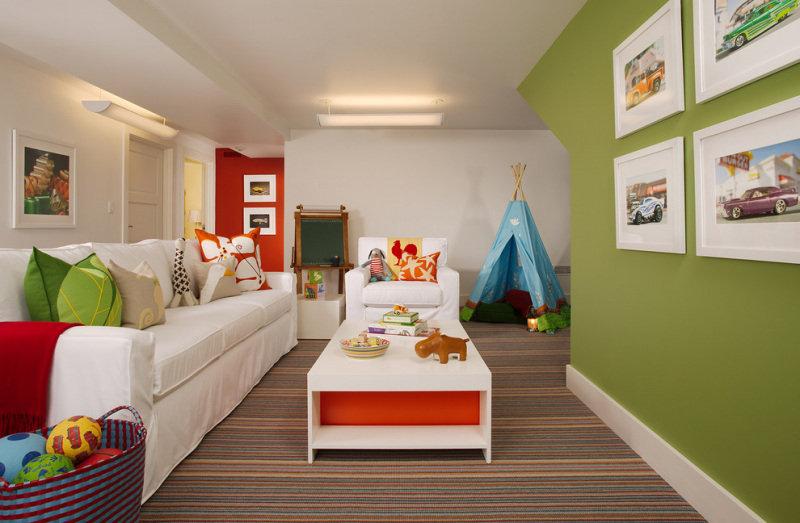 Но если стены и мебель в детской выполнена в очень спокойных тонах, для пола можно выбрать и яркую изюминку. Для интерьера с насыщенными тонами подберите ковер приглушенного колера (серый, мягко-коричневый, оливково-зеленый, темно-лазурный, бежевый).