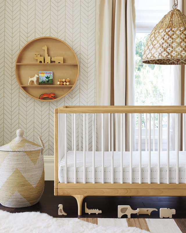 Бежевый шерстяной коврик придаст детской комнате тепла и уюта
