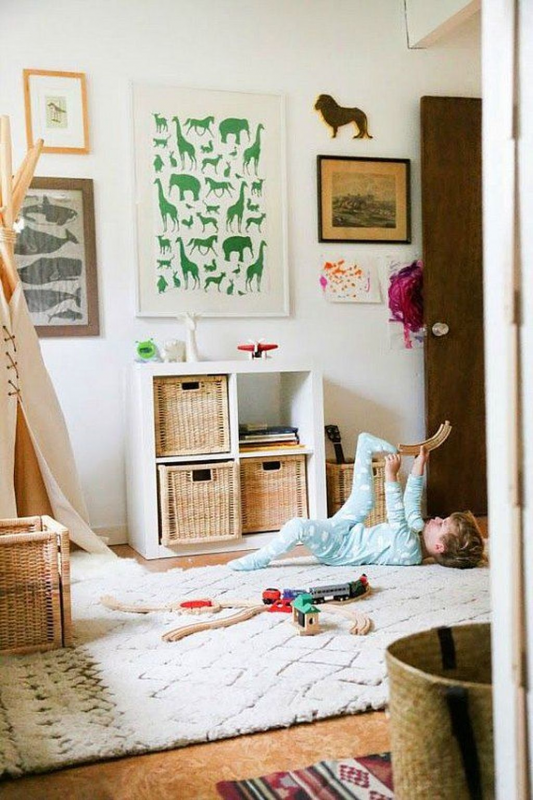 Совет! Не закрывайте ковром весь пол в детской – его будет потом слишком тяжело снимать для капитальной чистки. Лучше зонируйте помещение и каждую зону украшайте отдельным ковриком (для игры, под рабочим столом, у кровати).