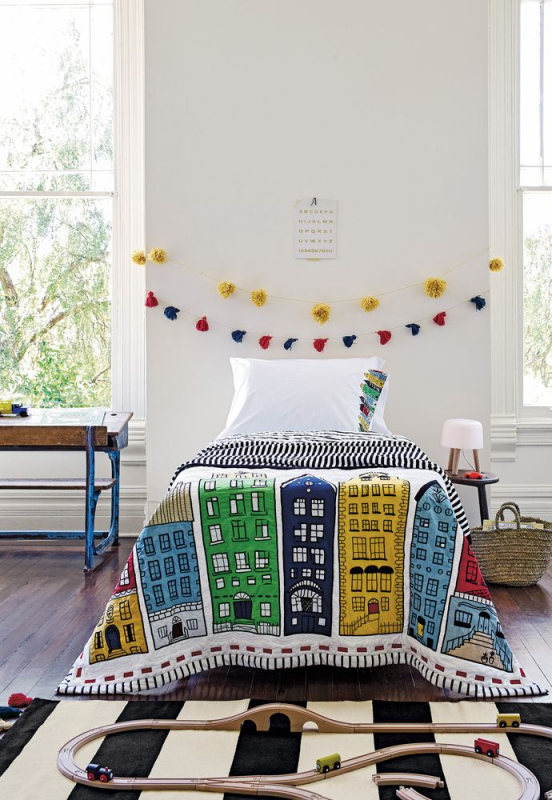 Незамысловатый рисунок и мелкие элементы декора создадут невероятную атмосферу для учебы, игр и творчества
