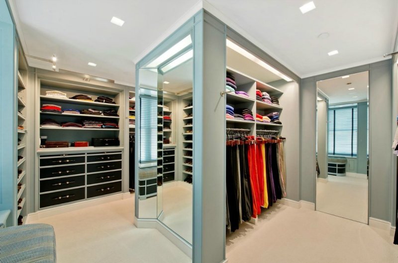 Системы хранения могут быть самостоятельными элементами или целым комплексом. Идеальный вариант для организации гардеробной – отдельная комната. Но если такой возможности нет, можно воспользоваться переносными мини-вариантами, модульными конструкциями. Правильно расположенные стеллажи, шкафы, ячейки позволяют систематизировать одежду, разделяя ее по сезону, половой принадлежности, назначению.