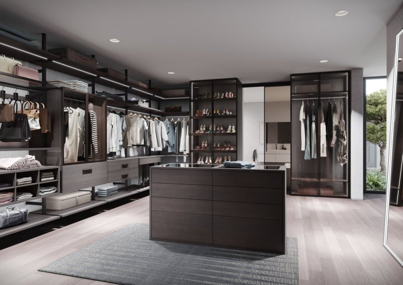 Существует множество стеклянных, зеркальных вариантов изделий для гардеробной, дополненных автоматикой, контролем доступа. Практичные стеклянные перегородки эффектно украшают интерьер. Это могут быть стандартные изделия, или созданные по индивидуальным параметрам.