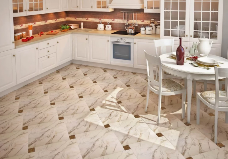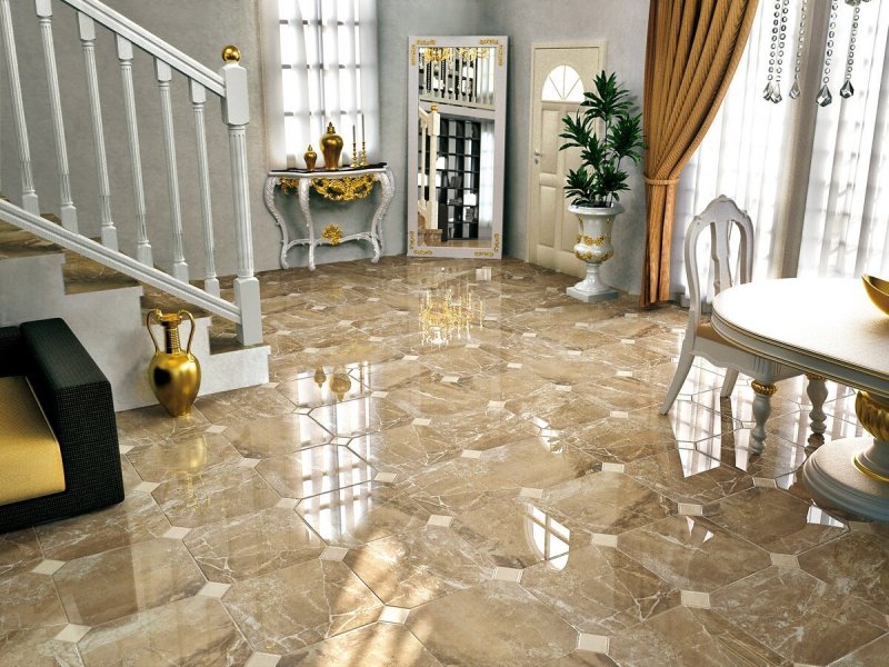 Фактура половой плитки должны быть умеренной. Незначительная ребристость исключит скольжение. Если узоры и бороздки будут сильно выступать, это может затруднить процесс уборки. Глянец будет подчеркивать даже малейшие загрязнения.