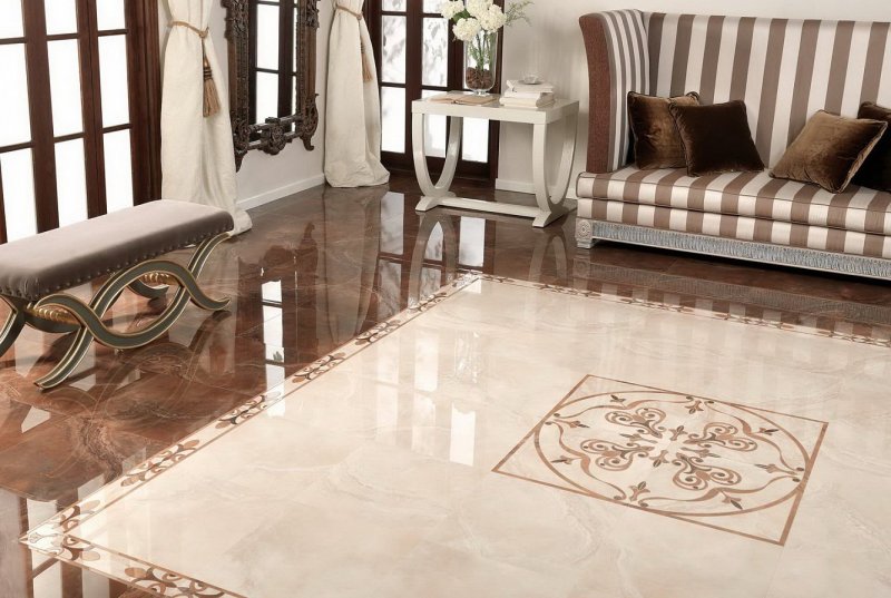 Реализовывать подобные проекты лучше в помещениях большой площади. Подходящей будет любая комната. Но лучше кафельный ковер будет смотреться, не заставленный мебелью, половиками, цветами, различным напольным декором.