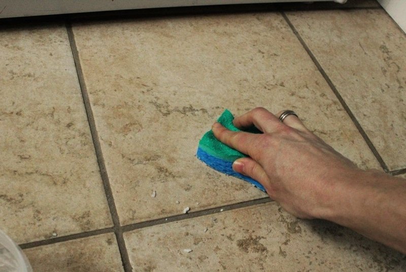 После застывания затирки можно применять финишную промывку. Если смесь была жидкой, надо дождаться ее полного высыхания. Убрать пыль и мелкие брызги раствора можно влажной губкой или простой сухой тряпкой. Основательно мыть шваброй только что уложенный пол крайне не рекомендуется. Можно сместить элементы, увеличить срок высыхания клея.