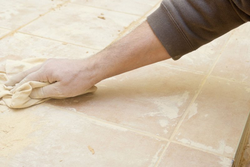 После всех монтажных и затирочных работ напольную плитку можно подготовить к эксплуатации. Смесь для отделки швов надо убрать не позднее чем через 30 минут после ее нанесения, иначе она застынет, и для удаления придется применять шпатель или химические агрессивные средства.