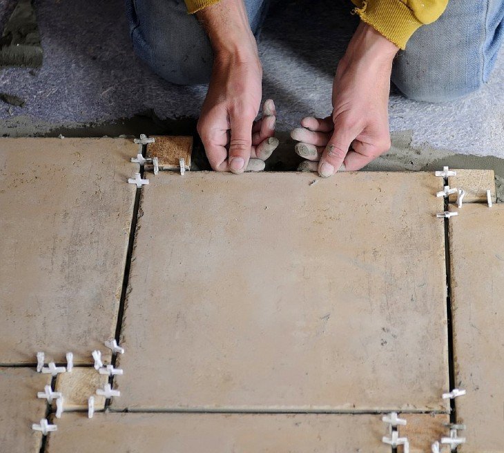 Работа по укладке плитки на пол проходит долго, процесс разделен на несколько этапов. Чтобы достичь наилучшего результата, действовать необходимо аккуратно, с точным соблюдением правил и технологий. Монтаж плиточных материалов может проводиться в помещении только при допустимой температуре. Оптимальная отметка + 20 градусов.