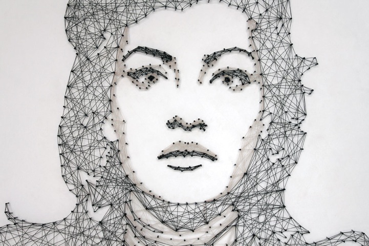 Уникальные портреты в технике стринг арта создаются долго, но выглядят весьма эффектно. Такое изделие будет интереснейшим, запоминающимся подарком. Основой здесь становится фото известного человека, знакомого, красивый карандашный рисунок из интернета. Создание подобной картины начинают не от центра, с заполнения всего фона – нитки сначала натягиваются в самых темных местах (тени, детали одежды), после прорабатываются светлые пятна (лицо, руки). Основная сложность здесь – использование большого количества цветов, полутонов, оттенков, что позволяет выполнить великолепный портрет либо изображение «в полный рост».