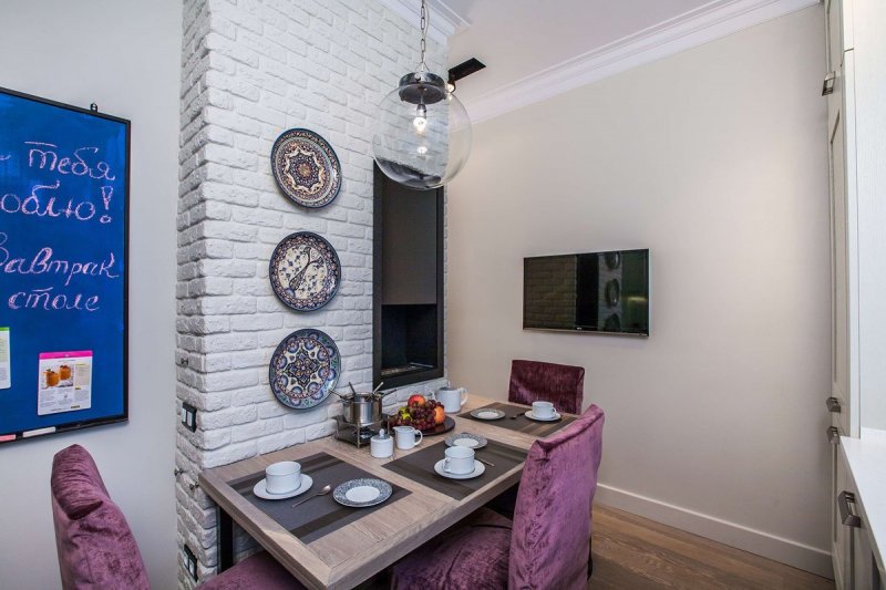 Правильные практические приспособления и украшения для кухни соответствуют критериям гигиеничности, легкости в уходе, влагостойкости, не лишены возможности чистки. Классический декор, часы делают из разрисованной бумаги, картона или железных тарелок с приборами. На стены крепят подносы и расписные тарелки: собирая геометрическую фигуру, ряды или волны. Посуду иногда размещают на подставках. Горизонтальные поверхности обустраивают также полочками. Декоративные варианты делают из реек, на которые кладут бутылки, и за которые цепляют кружки и ведерца. Грифельная доска понравится любителям художественных техник и оригинального дизайна. Оформление развивают, добавляя магнитные доски и ленты. Жильцы также прибегают к использованию росписи, наклеек, стеклянных колб и панно. Не меньшей популярностью пользуются картины, принты и фотообои в жанре пейзажа и натюрморта.