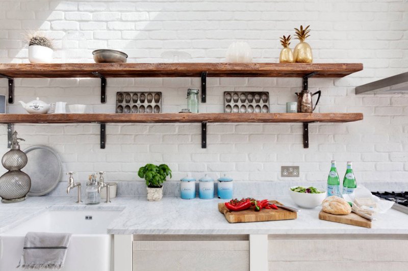 Для кухонного интерьера характерна большая загруженность поверхностей. Открытые системы хранения выполняют украшающую функцию: приборы, посуда и другие кухонные принадлежности попадают под обозрение, так что их стилистику следует согласовывать. А вот следовать интерьерному оформлению необязательно. На любой кухне адекватно смотрятся поделки в стилях прованс, греческом, модерн, викторианском, барокко. Греческий стиль — это глиняные предметы, дерево, меандры и узоры, мифологические рисунки, цветы. На поделках в такой стилистике присутствуют перечисленные мотивы. Провинциальная стилистика выражается в старомодном дизайне, присутствии керамики, выбеленных тонах, рисунках от руки. Барокко, модерн и викторианский стиль похожи из-за своей тяги к дорогому убранству. Поделки выполняют из ценных пород дерева, добавляют резьбу, камни, позолоту. Для барочной стилистики характерно выполнение в светлых тонах. Гамма викторианского и модернистского направлений — намного темнее.