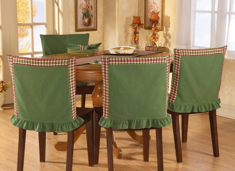 Для стульев изготавливают 3 вида накидок: на спинку, сидушки и сплошные. Для кухни будут лучше накидки с резинкой, даже для стульчиков со спинкой. Основную ткань можно сшить из гобелена или лоскутов, а наполнитель выбрать поролоновый. Для изготовления сидушки потребуются линейка, булавки, швейная машинка, мел, текстильная резинка, прочные нитки и сама ткань. Подкладку делают из мягкой материи, повторяющей форму стульчика. Толщину слоя наполнителя подбирают в зависимости от наличия спинки. Если ее нет — нужно 3—4 см, а для вариантов со спинкой — 6—7. Другие показатели приведут к тому, что сидеть станет некомфортно, или же подушка будет сдвигаться. Кроме поролона, подойдут также войлок и синтепон. Шитье из отдельных квадратных фрагментов, каждый из которых будет наполнен набивкой, займет больше времени, но и уровень комфорта окажется намного выше.