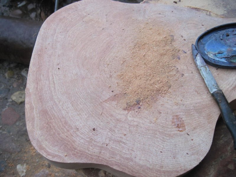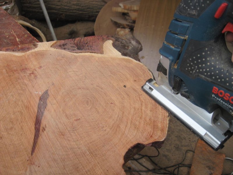 Выбирают спилы с минимальным количеством дефектов. Обработанных вариантов с синтетическими клеевыми веществами избегают. Породы дерева подходят любые, но следует помнить, что береза, ель и сосна портятся относительно быстро. Для древесины важна сухость по всему материалу, целостность структуры. Подбирают срезы без сучков, рыхлых участков, трещин, без крупных сколов. По запаху определяют, нет ли в сырье технического масла или бензина. Если разделочная доска будет использоваться для обработки мяса, то спил выбирают потолще. В ходе работ по контуру из чертежа вырезают нужную фигуру. Саму схему распечатывают или рисуют от руки. Разделочную доску получают с использованием лобзика, дисковой пилы, фрезера, строгального и фуговального станков. Грани обрабатывают шлифовальной машиной, наждачкой и напильником.