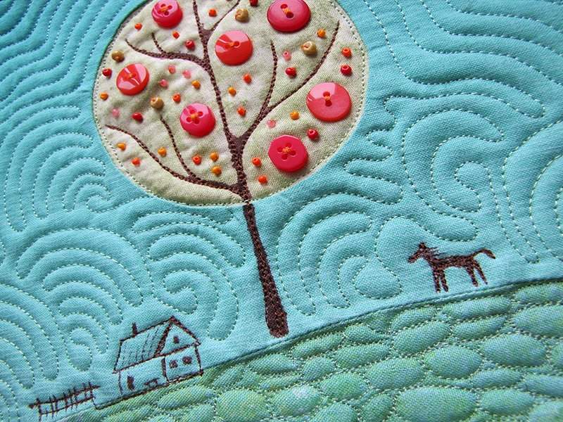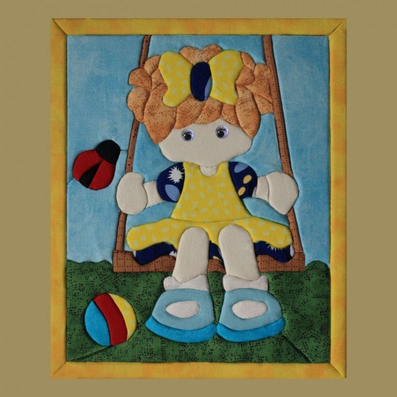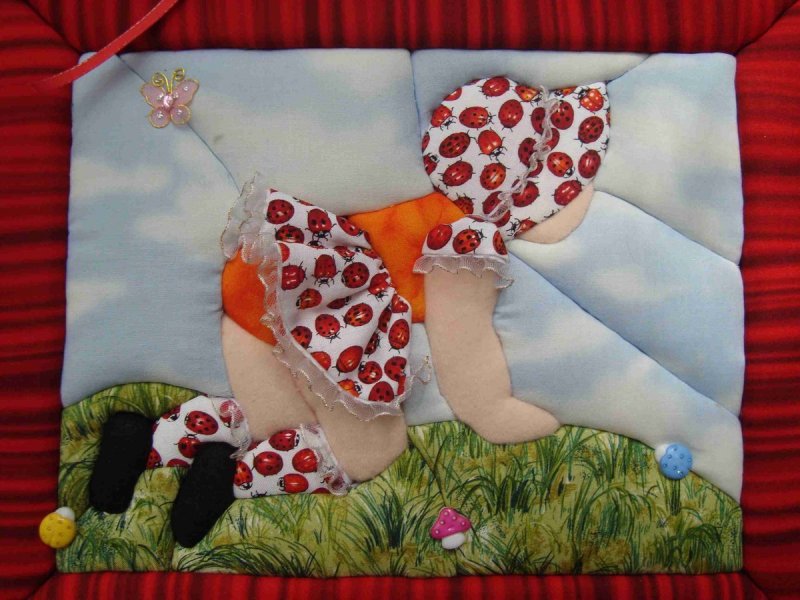 фон не обязательно делается однотонным – иногда его сшивают из квадратов, а сверху нашивают картинку – цветы, домики, животных, фигурки людей;