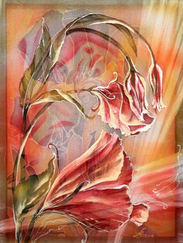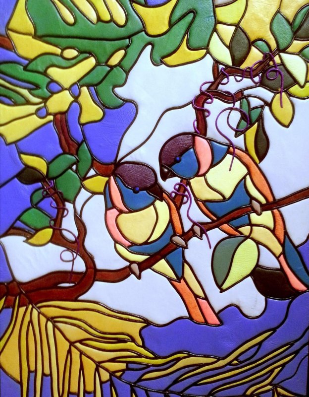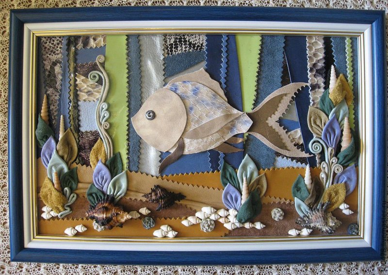 Большинство тонких тканей способно образовывать красивую драпировку, особенно в мокром состоянии. Чтобы текстиль имел вид мокрого, но при этом не терял форму, его пропитывают клеем, а под низ подкладывают мятую газету. Подойдет слегка разведенный водой ПВА, свежезаваренный клейстер. В данной технике обычно выполняются виды природы, изображения деревьев, птиц, рыб, животных, старинных зданий и др.