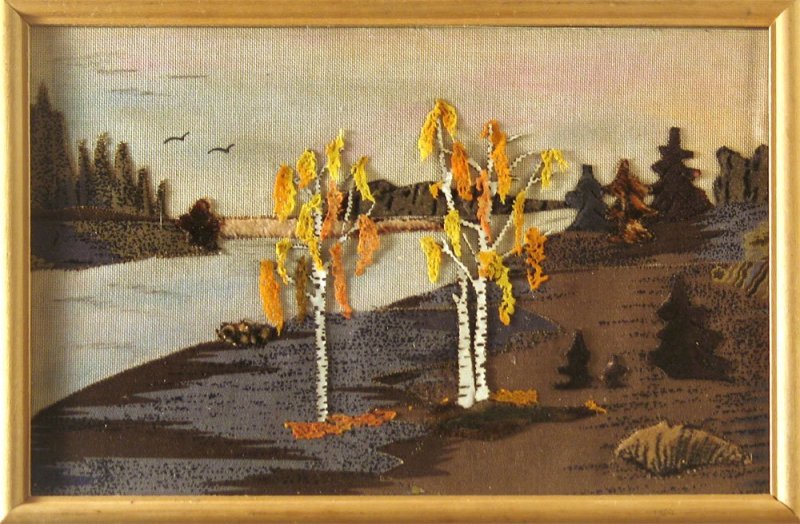 все лишнее обрезается, панно вставляется в рамку либо оформляется окантовкой.