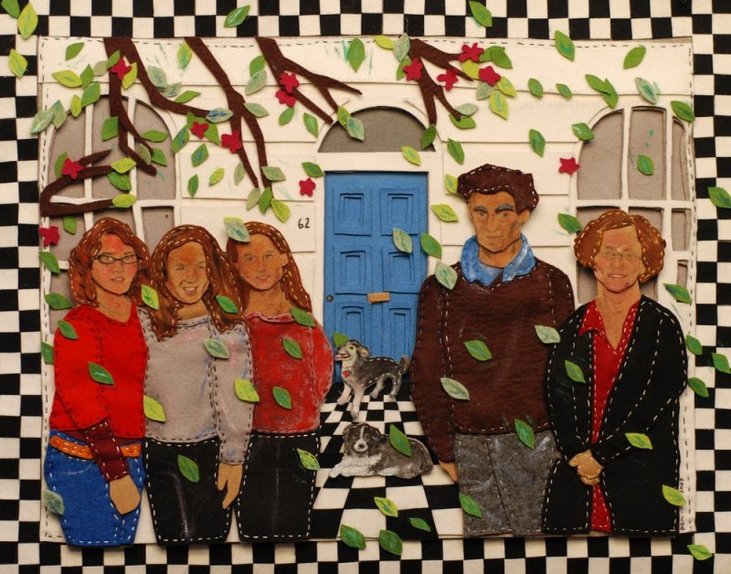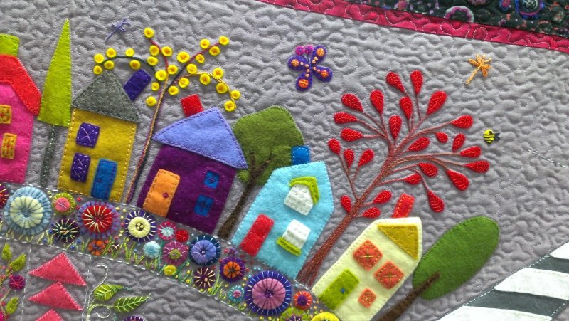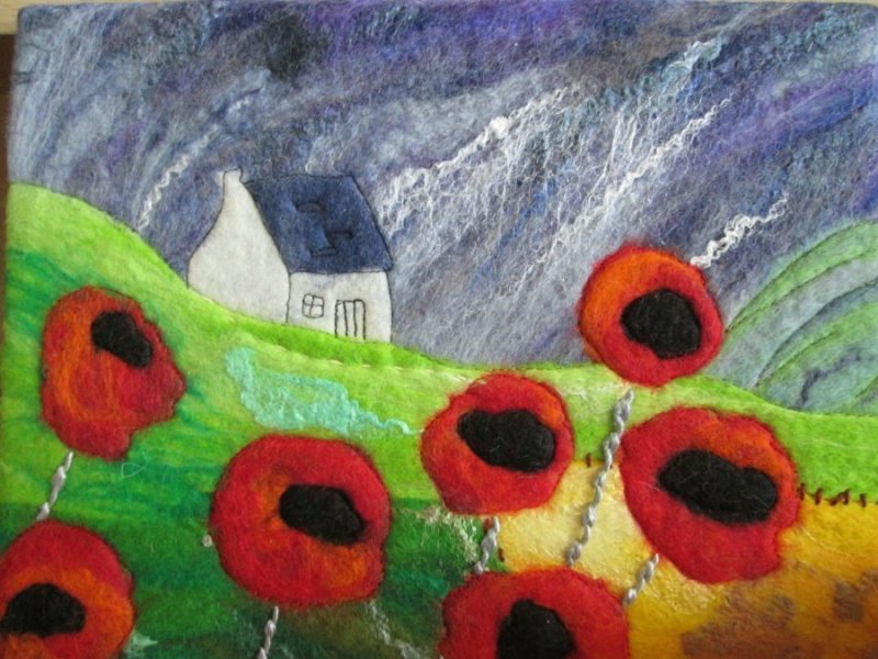 полученные фигурки прикладываются к фоновой ткани, предварительно закрепленной на фанере, картоне, приклеиваются либо пришиваются декоративными швами;