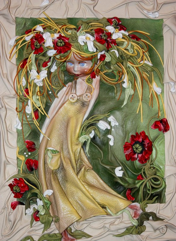там, где будет гладкий фон, поверхность тщательно выравнивается руками, чтобы выполнить складочки, их прищипывают, подложив газету, предварительно смоченную клейстером;