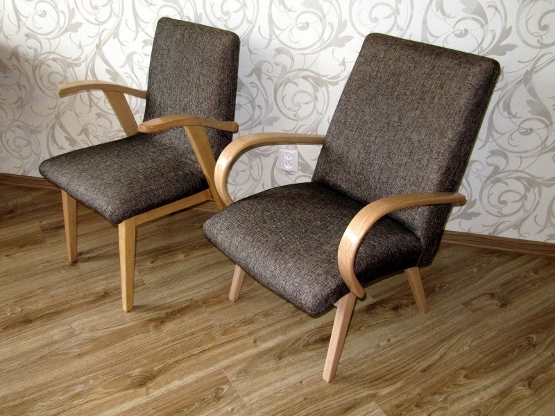 Старые, обветшавшие и сломанные изделия получат новый дизайн, если спланировать все этапы по их улучшению. Первым делом снимают деревянные элементы подлокотников и ножек. Их очищают от лака, при потребности восстанавливают целостность клеем и лакируют заново. Старую обивку аккуратно снимают. Наполнитель в большинстве случаев заменяют, а новый прикрепляют мебельным степлером. По старой обивке выкраивают новые детали и аналогичным способом крепят. Затем стул реставрируют обновленными элементами подлокотников и ножек. Не стоит выбрасывать кресла, на которых сломалась какая-то миниатюрная деталь или просто потерлась обивка — их ремонт будет быстрым и относительно простым. При этом чаще всего ремонтируют стулья середины и второй половины XX века с узкими старомодными подлокотниками. В квартирах и домах осталось много таких изделий советского производства.