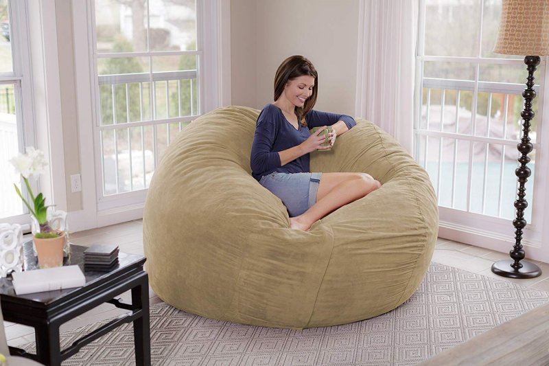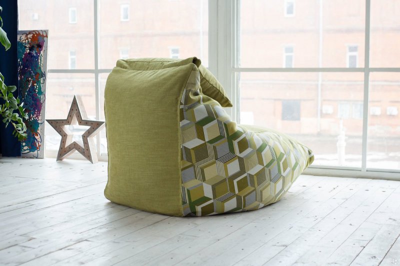 Бескаркасное кресло с поролоном имеет 3 составляющие: более-менее жесткую поролоновую плиту, внутренний чехол с молнией из крепкой неворсистой материи и внешнюю оболочку для увеличения срока эксплуатации внутренней, тоже с молнией. Лекала и строение для обоих чехлов подбирают одинаковые.