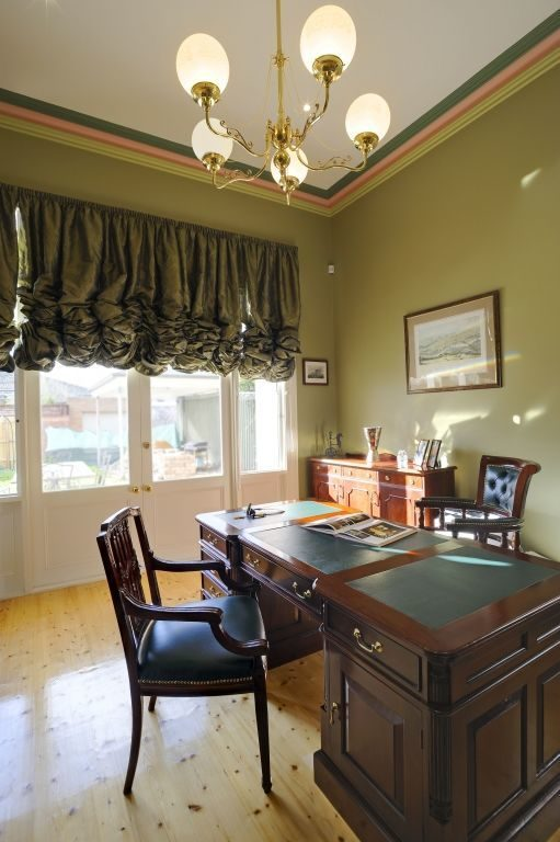 Идея! Если вам кажется, что одних только фестонных штор в гостиной или кабинете будет недостаточно, дополните их ламбрекеном. От сложных конструкций со свагами, «галстуками» и перекидами стоит отказаться, чтобы не утяжелять оконное убранство лишними складками. Гораздо лучше обратиться к жесткому ламбрекену с ровным либо фигурным низом.