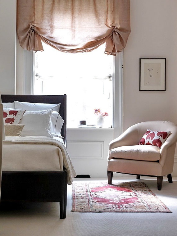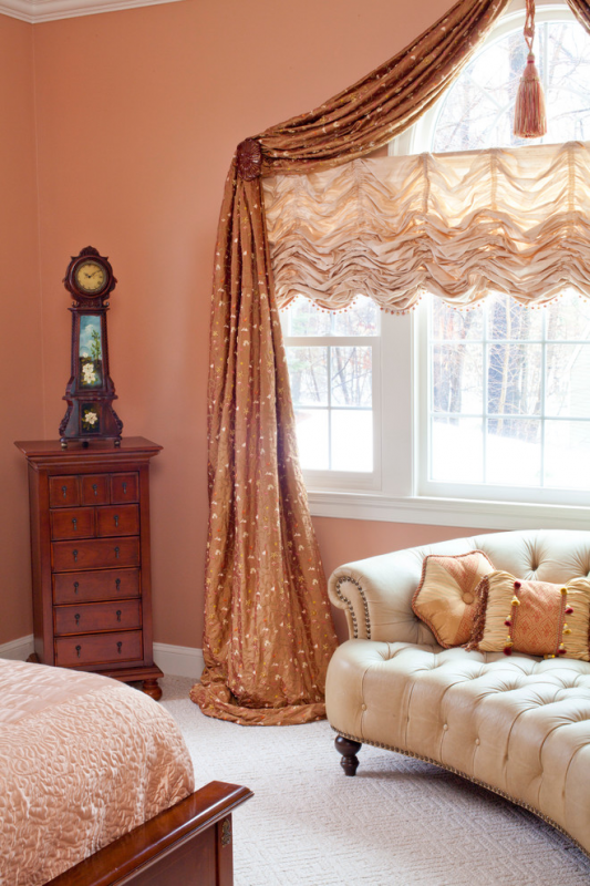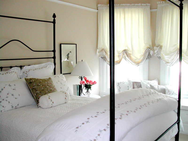 Что касается спальни, австрийские шторы в этом помещении придают ему легкую женственную нотку. За счет того, что они почти полностью лишены прямых линий и углов, «австрийки» с их округлыми складками и мягкими краями будут выглядеть странно в апартаментах холостяка, но зато гармонично – в спальне супружеской пары или незамужней девушки.