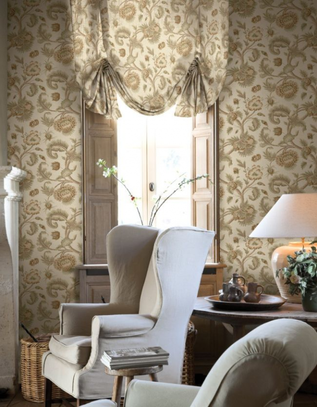 Натуральные ткани вроде льна, ситца, шерсти и хлопка хороши в качестве материала для «австриек» в том случае, когда все помещение оформлено в соответствующем стиле. Так, кантри, прованс и скандинавские интерьеры хорошо уживаются с фестонными шторами из натуральных тканей, тогда как в помпезном классическом убранстве они могут несколько удешевлять впечатление от комнаты.