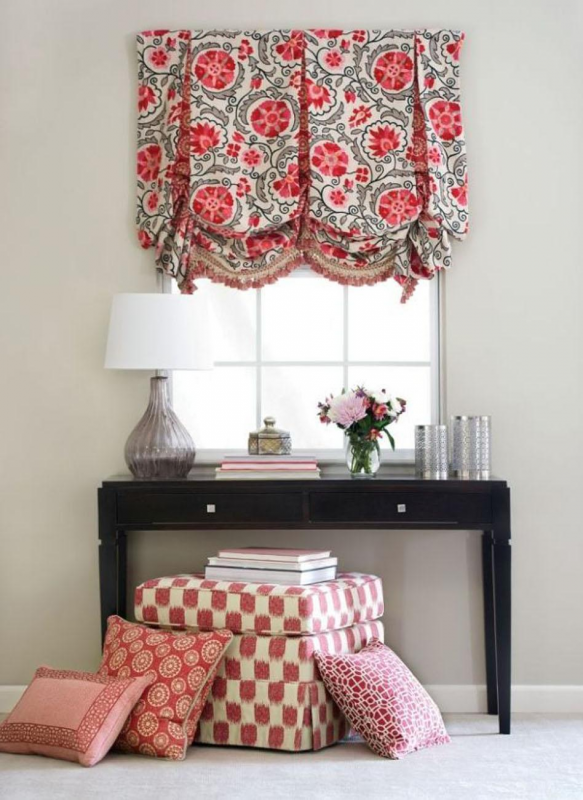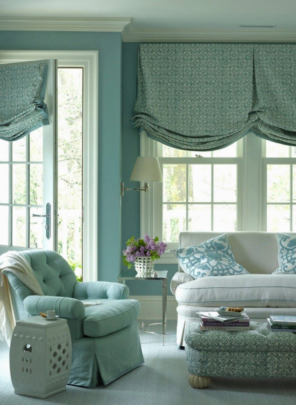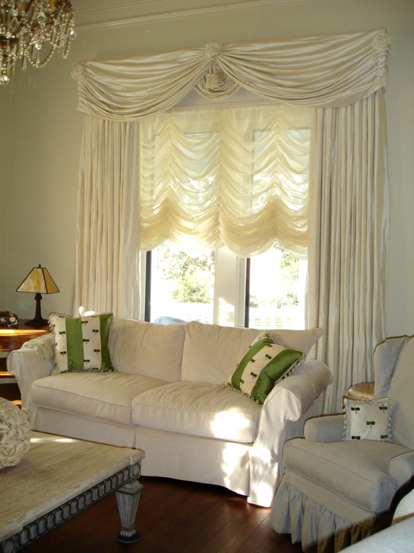 В гостиной, зале и кабинете «австрийки» будут так же к месту, как и на кухне. И если в первом случае они шьются в основном из простых материалов (например, из хлопка), то на этот раз не грех будет подобрать более представительные ткани – батист, тафту, органзу, муар.