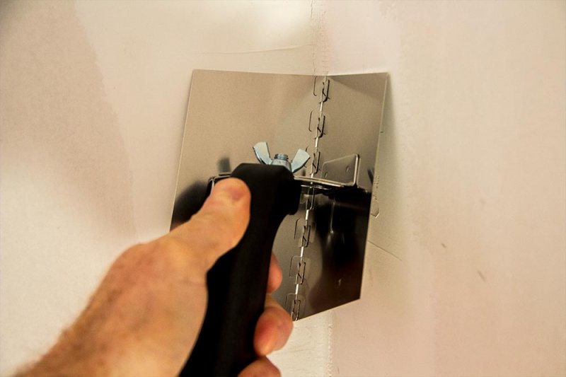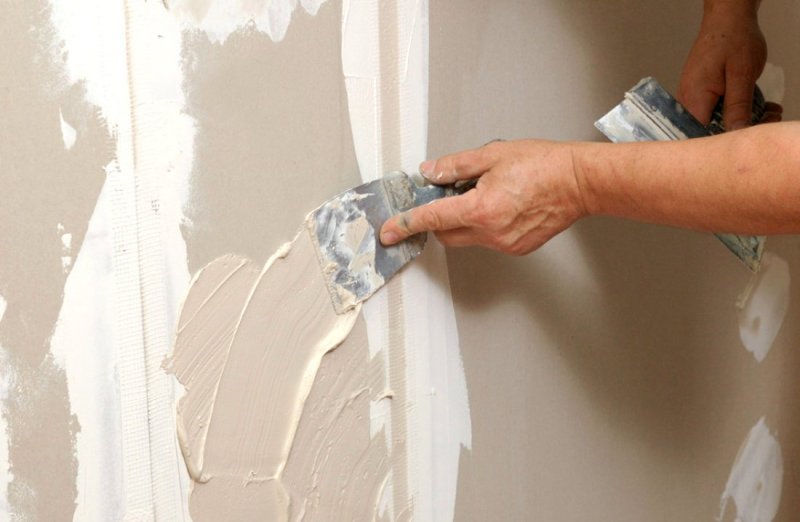 Часто работают с гипсокартоном. В обработке могут возникнуть проблемы из-за швов и крепежных деталей. Их покрывают отдельно, а потом вместе с остальной поверхностью. Швы обрабатывают дважды еще при первом нанесении шпаклевочной смеси. Шпатлевка под покраску должна быть плотной и ровной. Окрашивание применяют в случае со стеклохолстом. Обойтись без шпатлевания будет трудно, потому что рельеф холста 2, 3 и даже 4 четыре слоя краски скрыть не смогут. Под обои стены шпаклюют до идеально ровного покрытия. Теоретически можно обойтись одним слоем универсального материала, но главное — чтобы поверхность оказалась идеальной. Для работы с углами применяют шпатели соответствующей формы и откосные уголки. Внутренние обрабатывают с помощью серпянки и разновидности уголкового шпателя — его ручка крепится к перпендикулярным плоскостям с другой стороны.
