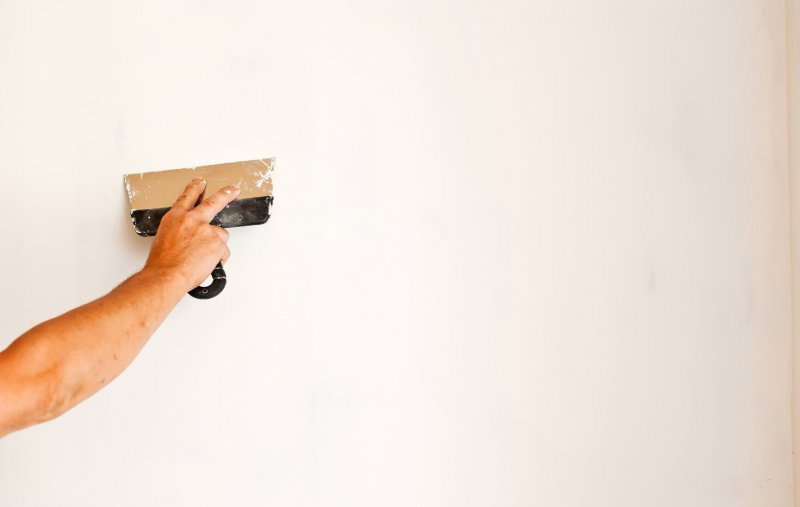 Перед покраской стены отделывают полимерной или гипсовой шпатлевкой. Гипсокартон обрабатывают материалами для сухих помещений.