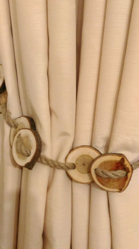 При покупке держателей из дерева важно тщательно осмотреть предмет – наличие мельчайших неровностей, заусенцев способно безнадежно испортить штору, оставив на ней затяжки.