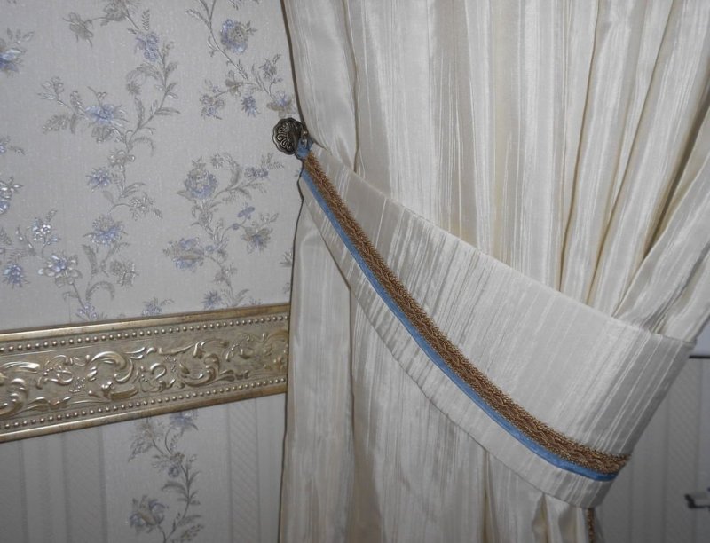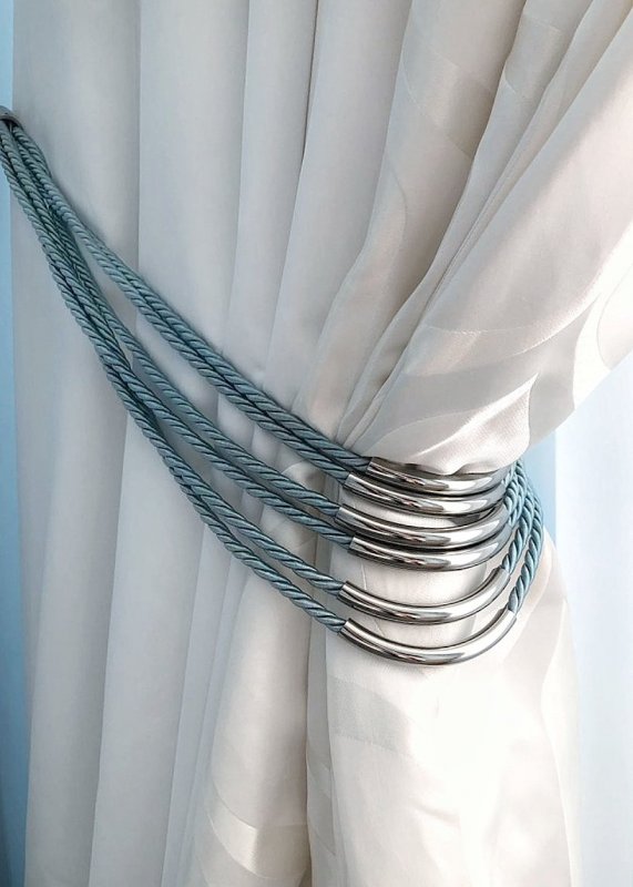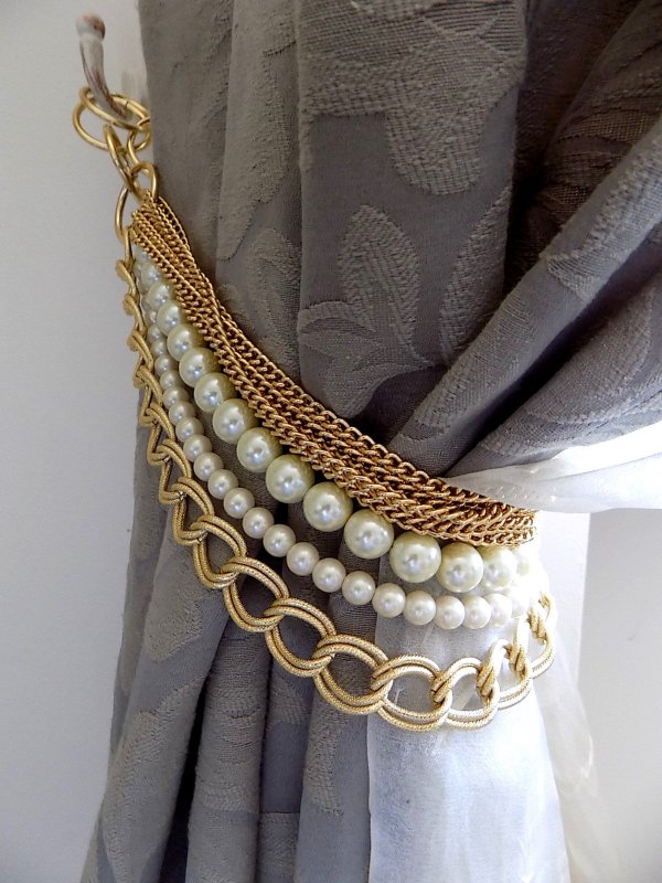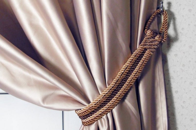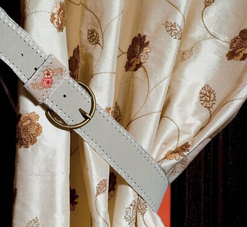 брючные ремни, пояса от платьев, тщательно подобранные под цвет, фактуру занавеса – также отличная идея;