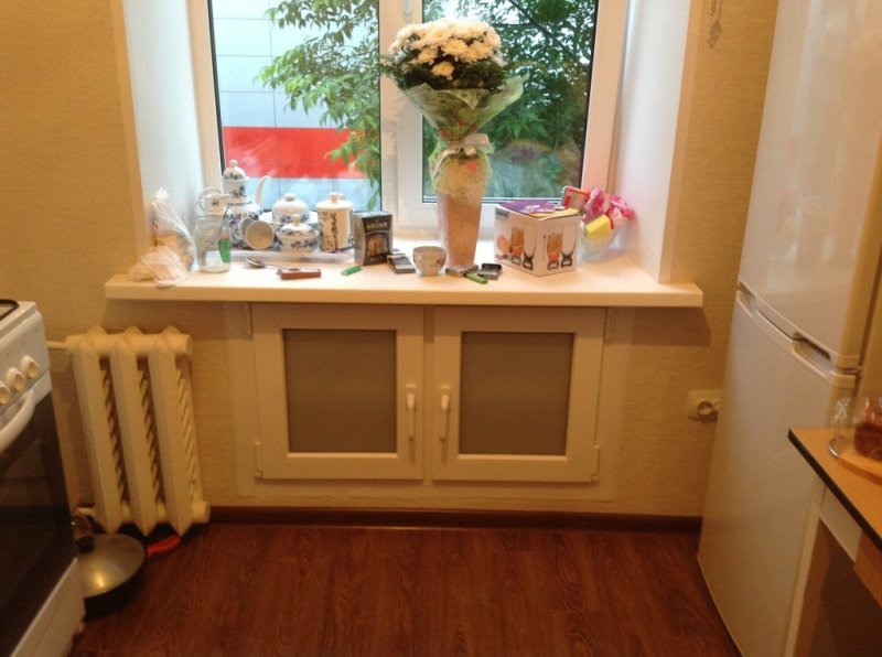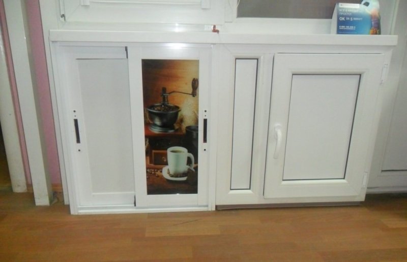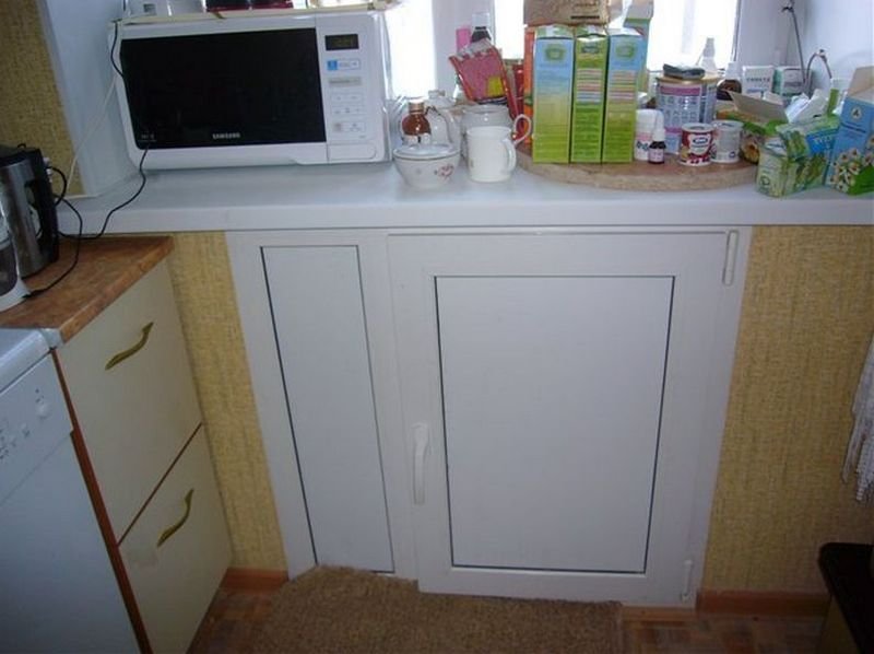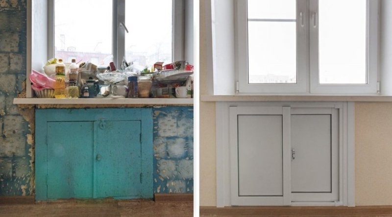 Небольшое пространство под окном, предусмотренное или созданное искусственно, может забрать часть нагрузки с классических кухонных шкафчиков и переполненного холодильника. В отдельных случаях от рефрижератора и вовсе избавляются. Для продуктов с теплым или прохладным режимом хранения предусматривают простые шкафчики, иногда с утеплением, электроподогревом или вентиляцией. Усиленный вариант проветривания с доступом уличного воздуха нужен для импровизированных холодильных камер. Морозилку удастся поставить в том случае, если будет обеспечено питание для нее, а также — устранены обогревающие элементы вроде батарей и каминов. Самостоятельная подготовка ниши может включать расширение доступного места. В любом случае понадобится защитно-санитарная отделка штукатуркой и гладким лицевым покрытием. Материалом дверец чаще всего выбирают металлопластик, МДФ и ЛДСП. От маленького шкафчика обычно не отказываются, а большое пространство под широким подоконником всегда используют по полной.